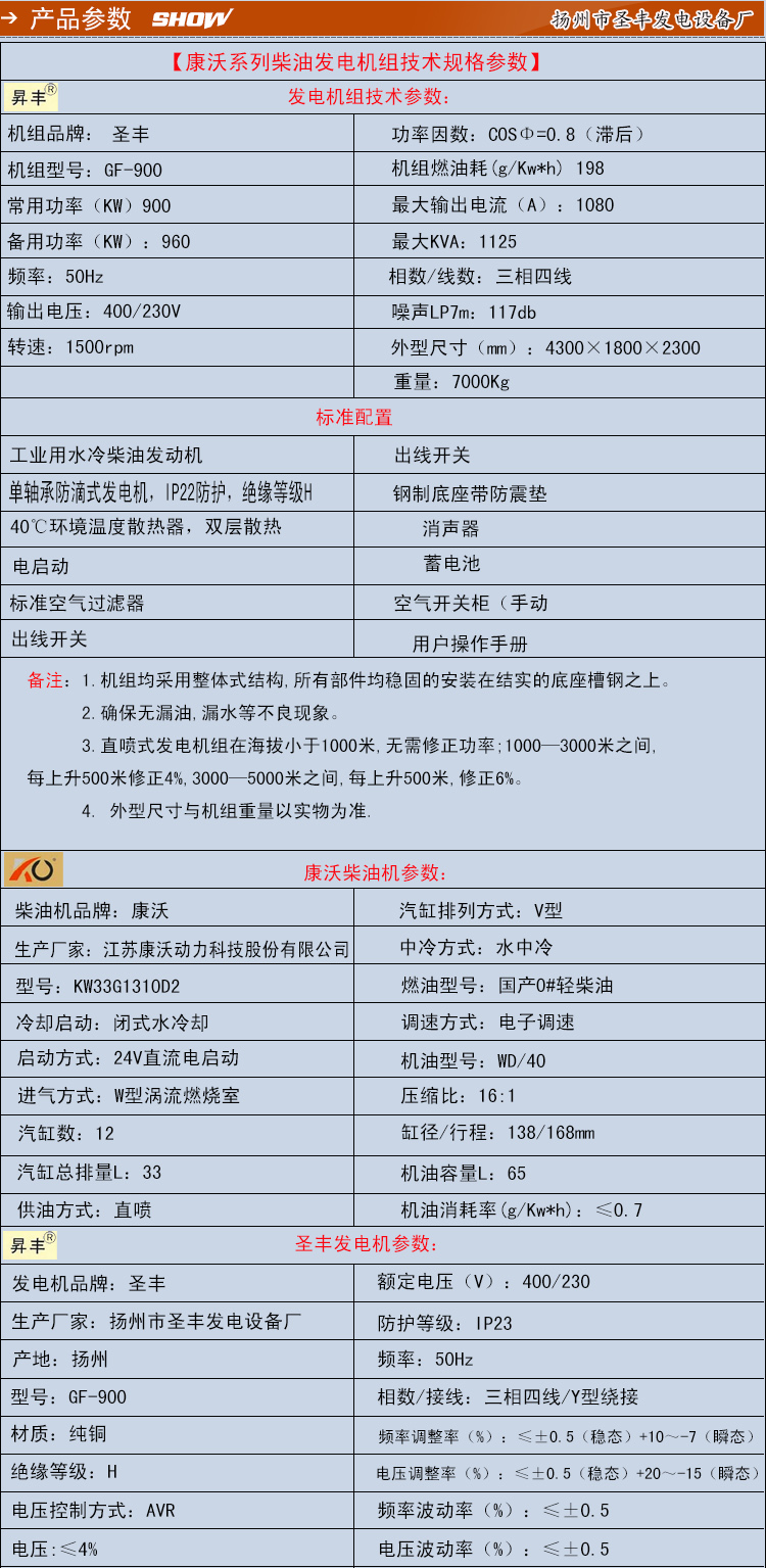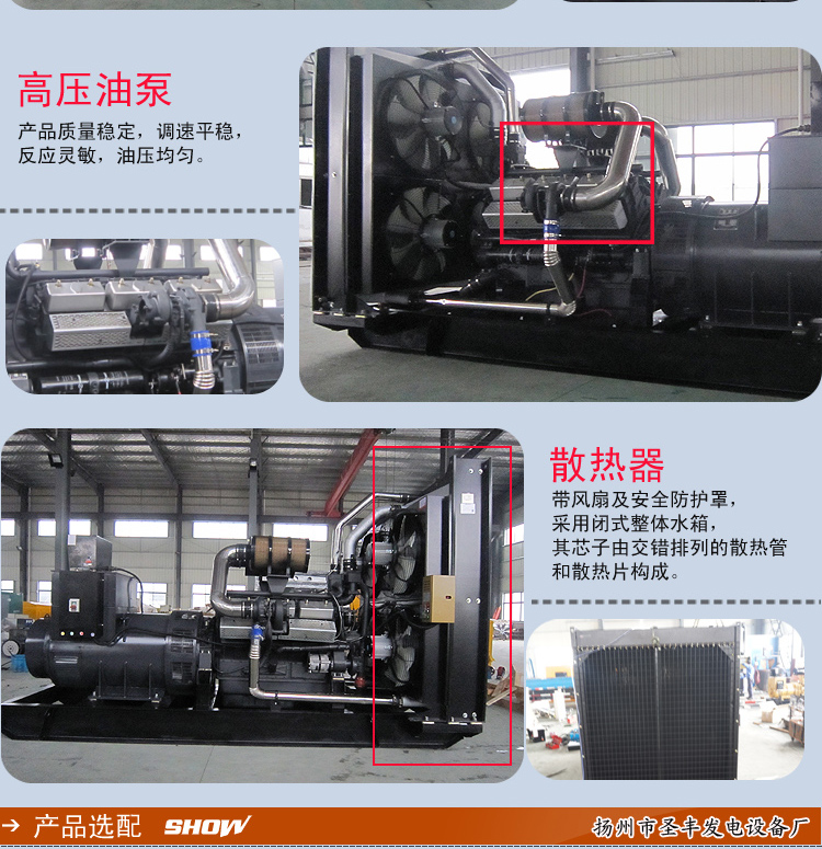 揚州市圣豐發電設備廠由業內資深的30余名青年工程師團隊傾力打造,專業從事通用汽、柴油、燃氣發動機及其終端產品的研發和生產。是研制節能變頻發電機組、發電電焊兩用機、低噪音柴油發電機組、全自動柴油機發電機組,4輪3輪2輪移動電站柴油發電機組,選用柴油機品牌有:沃爾沃、康明斯、強鹿、大宇、道依茨、上柴、濰柴、濟柴、無動、帕歐等。發電機可選擇品牌:無錫斯坦福、上海馬拉松、蘭電、蘇州德鋒(凱捷利)、上海斯坦福、廣州英格、利萊森瑪、西門子發電機等。以‘圣豐’為主導品牌的產品集各家之所長,技術領先,匹配合理,美觀大方,性能卓越!準確的市場和產品定位,最優化的性價比,精明著客戶的選擇。廣泛應用于國內外各大行業,如工廠、酒店、房地產、樓宇、鐵路、石油、礦山、電信系統等。自主研發成套的柴油發電機組具有先進的四保護、自啟動自切換、計算機遠程監控等功能,功率覆蓋3KW-3000KW。各功率段均可提供標準機組、靜音機組、車載及拖車機組和并機柜等,并可實現固定式、移動式、自動化、低噪音、多機并聯、應急電源車等多種供電方案。同時可為客戶提供機組容量選型、機房設計、技術安裝指導和調試等專業服務。