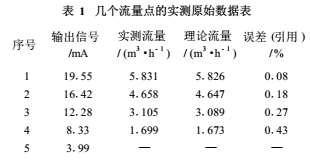 流量計(jì)廠家在出廠檢驗(yàn)**中都把實(shí)測(cè)的幾個(gè)流量點(diǎn)的原始數(shù)據(jù)以表1方式給出,從中可見(jiàn)實(shí)測(cè)的引用誤差都遠(yuǎn)遠(yuǎn)小于*大允許誤差。表1的EMF量程為6m³/h(100L/min),輸出電流為4~20mA;且在滿量程值50%以上的測(cè)量點(diǎn)精度較,而在滿量程值1/3以下測(cè)量點(diǎn)精度低。