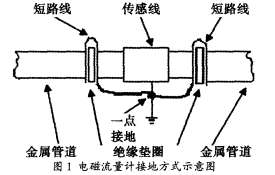再次,需要做好在污水流量計安裝過程當中接地以及接液方面的工作。在應(yīng)用污水流量計對管道內(nèi)部流體流動速度進行測量的過程當中,傳感器輸出信號與電極間所對應(yīng)的電壓差水平處于均等狀態(tài)。因此,為了確保流量計的平穩(wěn)、可靠運行,就需要設(shè)置一個零電位的基準點作為參照。故而,在此過程當中,接液處理的核心在于:將管道內(nèi)部導(dǎo)電液體接地設(shè)置為零電位的基準點參照;而同時接地處理的核心則在于:避免污水流量計在測量流體流速過程當中受干擾影響,并對污水流量計進行合理的安全保護。與此同時,接地處理還能夠使靜電感應(yīng)以及電磁感應(yīng)所可能誘發(fā)的噪聲電壓得到有效的抑制,剔除對測量數(shù)據(jù)的干擾。通過對接地電阻水平的控制,使回路雜散電流壓降水平明顯降低,依賴于降低共模干擾電壓的方式,達到鞏固污水流量計測量準確性的目的。具體的接地方式如圖所示