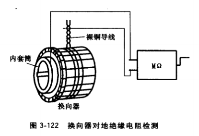 連接,見圖3-122,手搖兆歐表手把,即測(cè)得換向器所有換向片對(duì)地絕緣電阻。