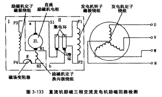 勵磁回路指發電機中提供勵磁電流的電路。現將不同類型發電機的勵磁回路斷路檢査法介紹如下。