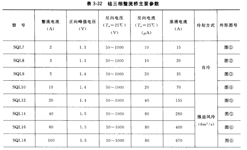(7)旋轉三相半橋組整流器主要參數見表3-34。