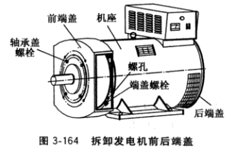 (1)卸下發電機。松開發電機與機組底架及發動機連接的所有緊固件,吊出發電機。注意,切不可采用傾斜式單耳吊出發電機。
