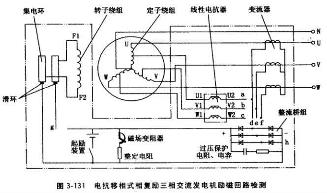 3.電抗移相式或電抗變流復合式相復勵三相交流發電機不能發電