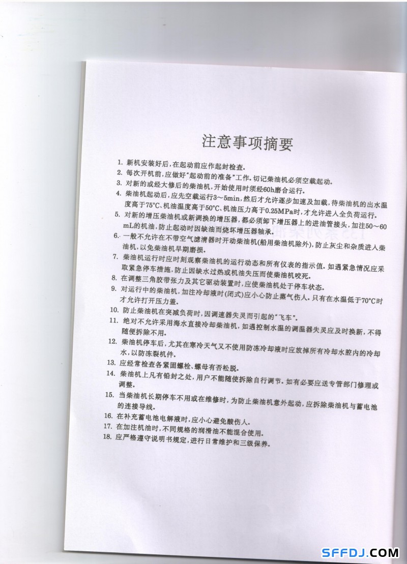 發(fā)電機(jī)組電站用上柴135系列柴油機(jī)使用保養(yǎng)說明書