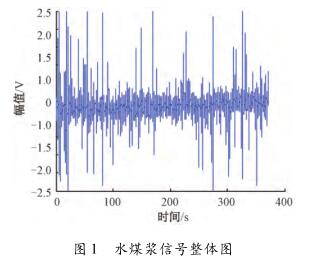 針對(duì)水泥泥漿流量計(jì)測(cè)量水煤漿時(shí)出現(xiàn)較大波動(dòng),甚至回零這一問(wèn)題,特去某煤化工企業(yè)甲醇分公司進(jìn)行現(xiàn)場(chǎng)數(shù)據(jù)采集。該公司所使用的對(duì)置式四噴嘴氣化有4個(gè)噴嘴,噴嘴管道口徑為125mm,管中水煤漿流量基本穩(wěn)定在19m³/h(流速約為0.48m/s)。每條噴嘴煤漿線(xiàn)上安裝了3臺(tái)水泥泥漿流量計(jì),每臺(tái)水泥泥漿流量計(jì)由傳感器和變送器兩部分組成。選擇其中1條水煤漿管線(xiàn)上的1臺(tái)水泥泥漿流量計(jì)進(jìn)行數(shù)據(jù)采集,因?yàn)樵撆_(tái)水泥泥漿流量計(jì)測(cè)量結(jié)果波動(dòng)大,甚至出現(xiàn)回零的現(xiàn)象。將課題組研制的基于DSP的電磁流量變送器的信號(hào)線(xiàn)和勵(lì)磁線(xiàn)接到該電磁流量傳感器的電極和勵(lì)磁線(xiàn)圈上,組合成完整的水泥泥漿流量計(jì),進(jìn)行水煤漿數(shù)據(jù)采集。使用的電磁流量變送器是以TI公司DSP芯片TMS320F28335為核心,采用高頻勵(lì)磁方案,其硬件主要包括勵(lì)磁控制系統(tǒng)和信號(hào)采集處理系統(tǒng),具體的模塊有勵(lì)磁驅(qū)動(dòng)模塊、信號(hào)調(diào)理采集模塊、信號(hào)處理控制模塊、人機(jī)接口模塊、通信模塊及電源管理模塊。信號(hào)調(diào)理采集模塊中的調(diào)理電路對(duì)一次儀表輸出的信號(hào)進(jìn)行放大和濾波,截止頻率是2kHz,放大倍數(shù)約為230倍。通過(guò)NI公司USB-6216型號(hào)的數(shù)據(jù)采集卡進(jìn)行數(shù)據(jù)采集,把調(diào)理電路的輸出端連接到數(shù)據(jù)采集卡的一個(gè)差分輸入端,并設(shè)置數(shù)據(jù)采集卡工作在差分的測(cè)量模式,設(shè)置采集卡的采樣頻率為10kHz。采集多組水煤漿信號(hào)數(shù)據(jù),每組數(shù)據(jù)的時(shí)間長(zhǎng)度為5min。