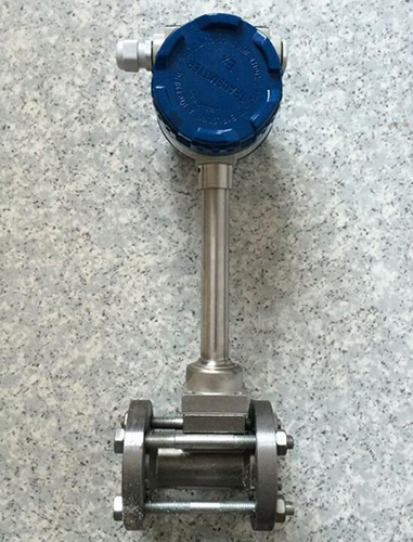 渦街流量計由法蘭卡裝式流量傳感器和顯示儀表組成。法蘭卡裝式流量計將專用法蘭焊接在工藝管道上,然后用螺栓、螺母將儀表固定在兩個法蘭之間。安裝簡單便捷,成本低。本公司提供專用法蘭,不需另行購買安裝法蘭。