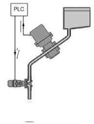 在灌裝系統(tǒng)中用到快速切斷閥(定量閥)來控制灌裝的啟停。快速切斷閥的控制原理:當(dāng)電磁閥接收到PLC的輸出信號(hào)(由PLC采集灌裝流量計(jì)的脈沖信號(hào)后處理的輸出信號(hào))時(shí)開始動(dòng)作,通過執(zhí)行機(jī)構(gòu)帶動(dòng)閥桿和閥芯向上運(yùn)動(dòng),閥芯和閥座分開,流體通過閥座進(jìn)入灌裝管道,開始灌裝,當(dāng)電磁閥接收到PLC輸出信號(hào)關(guān)閉閥門時(shí),閥桿向下運(yùn)動(dòng),帶動(dòng)閥芯向下運(yùn)動(dòng),使閥芯和閥座接觸,從而切斷流體達(dá)到結(jié)束灌裝。本應(yīng)用中控制閥的閥桿在管道中,流體從上向下流經(jīng)整個(gè)閥體,閥桿的動(dòng)作行程分兩級(jí),對(duì)應(yīng)于小流量和較大流量。