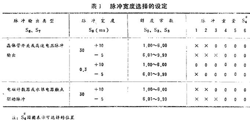 脈沖輸出有四種通用類型:高速電壓脈沖。晶體管開關(guān)脈沖、電磁計數(shù)器驅(qū)動脈沖和水銀繼電器驅(qū)動脈沖。這些類型的選擇用S6, S7,插頭按表1插入有關(guān)位置。
