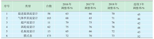 在2017年的工作基礎(chǔ)上,對2018年送檢的氣體流量計進行了抽查,并按不同類型進行了統(tǒng)計(表2)。