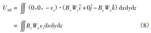 式中V為純水流量計傳感器測量空間;W→為權(quán)函數(shù)。在直角坐標(biāo)系(x,y,z)中,式(5)可以轉(zhuǎn)換為