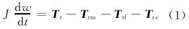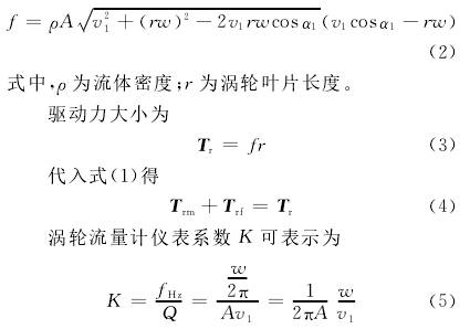 渦輪在轉(zhuǎn)動時所受的力矩大致可分:流體對渦輪的推動力矩Tr,機械摩擦力矩Trm,流體對渦輪產(chǎn)生的流動阻力矩Trf和電磁阻力矩Tre。渦輪運動方程可以表示為