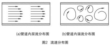 當(dāng) Re > Rec 時(shí),管道內(nèi)流體為湍流(湍流是流體的不規(guī)則運(yùn)動(dòng),流場中各種量**間和空間坐標(biāo)發(fā)生紊亂地變化),如圖 2(b)所示。