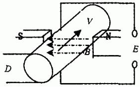 根據(jù)法拉*電磁感應(yīng)定律,即導(dǎo)電液體在磁場(chǎng)中切割磁力線運(yùn)動(dòng)時(shí),導(dǎo)體中產(chǎn)生感應(yīng)電勢(shì)(見(jiàn)圖1),其感應(yīng)電勢(shì)的大小與磁感應(yīng)強(qiáng)度、流體做切割磁力線強(qiáng)度等因素成正比。
