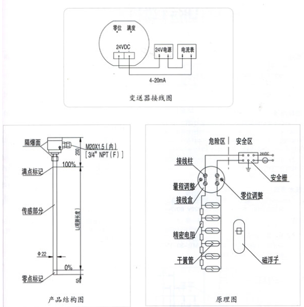 遠(yuǎn)傳配套儀表與顯示儀表或工控機(jī)的連接應(yīng)分別通過保護(hù)管或屏蔽雙芯電纜敷設(shè);接線盒接線孔敷設(shè)完畢后,要求密封良好,以防遠(yuǎn)傳配套儀表受雨、潮等因素影響,當(dāng)遠(yuǎn)傳儀表不能正常工作時(shí),應(yīng)在檢修或調(diào)試后及時(shí)將接線盒蓋上。若發(fā)生此種現(xiàn)象,可在液位穩(wěn)定后用磁鋼重新標(biāo)定)為避免運(yùn)輸過程中損壞浮球組件,在出廠前應(yīng)將浮球組件從磁浮球液位計(jì)監(jiān)控器上取出。水平儀安裝后,打開下部排水法蘭,將浮球總成重新裝入管路中。請注意,浮球總成的端朝上,不可倒置。