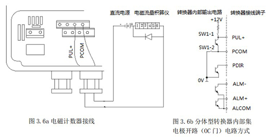 1.4.5 頻率(脈沖)、上下限報(bào)警、流向標(biāo)示等輸出均為集電極開路的電平輸出信號(hào)。