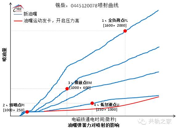 待共軌之家一一與大家分享。共軌之家獨家原創,版權所有,轉載請注明出處!1明明噴油器各個測試點都符合規范,為什么裝上去就是敲缸?對于噴油器維修過程中墊片調整的方法,共軌之家早在去年夏天就與大家詳細分享過,多數泵友掌握了基本方向。但是,大家都忽視了某些細節,比如對墊片調整幅度的限制,共軌之家給出了建議值。很多泵友都問過:更換閥組件,通過加厚針閥升程墊片厚度的方法,噴油器所有的噴射點油量都符合規范,但是為什么裝上去就是敲缸呢?相信大家都還記得如下所示的噴油器噴射曲線圖。