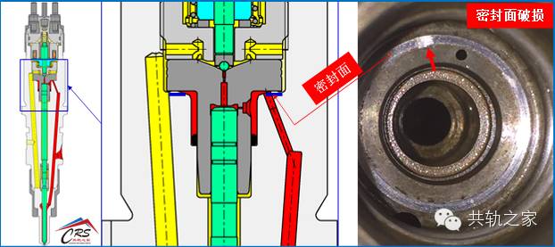 小軌提醒注:由于全負荷點和排放點的噴射量相對較大,而低怠速點的軌壓很低,因此它們的油量受油嘴座面泄漏的影響不明顯。哪些情況會導致油嘴座面泄漏呢?可能原因有:1油嘴密封座面損傷;2針閥頭部密封面破損(如碳涂層脫落);3油嘴座面卡有顆粒;4極端情況下,油嘴球頭會開裂出現裂紋。